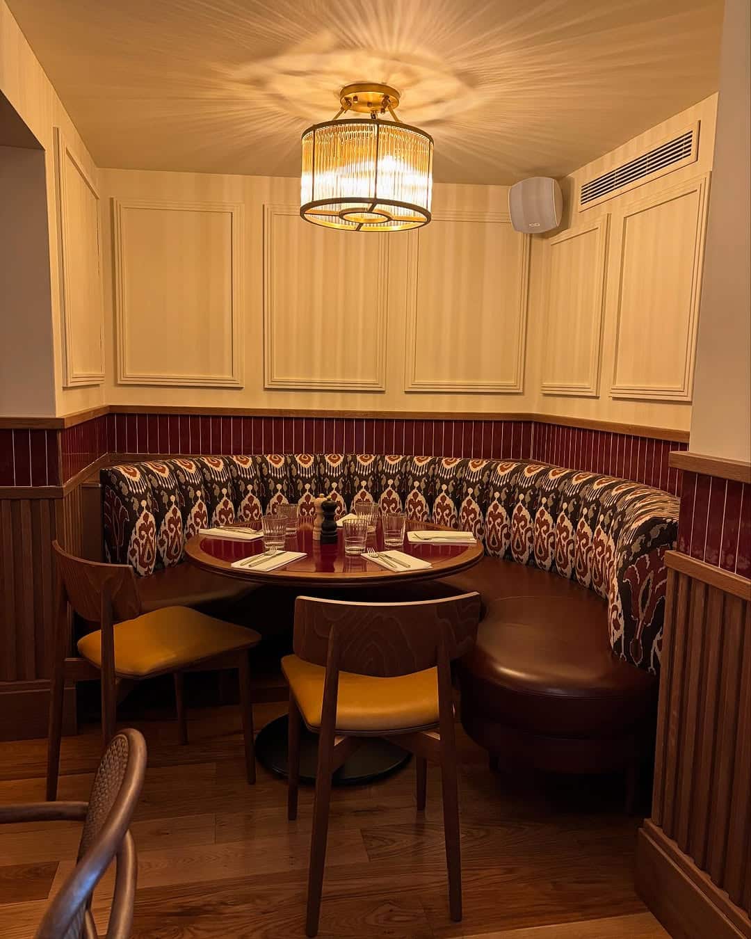 La traditionnelle table de bistrot troque son sertissage en métal contre un cerclage en bois de hêtre, aux moulures soignées.