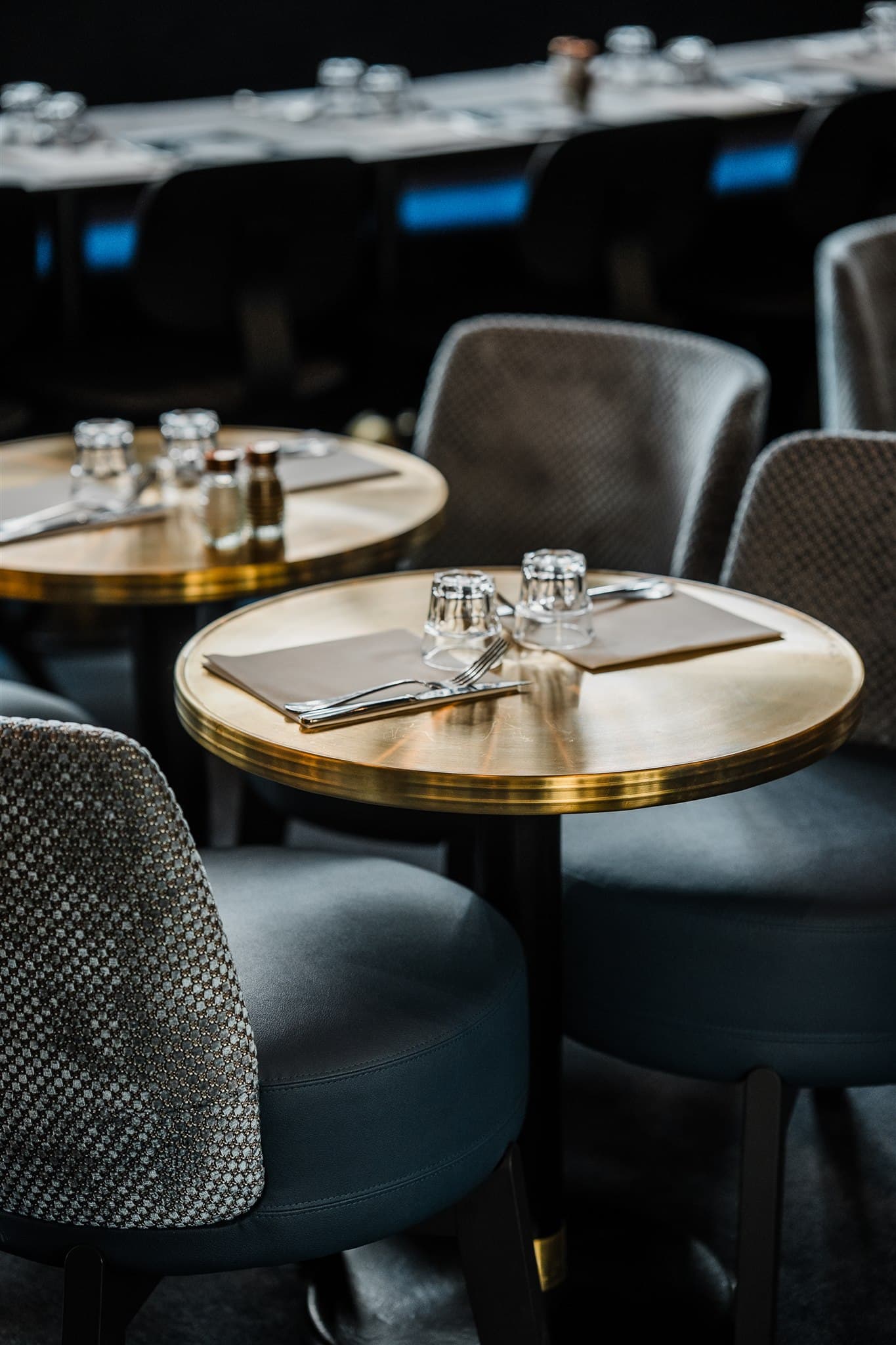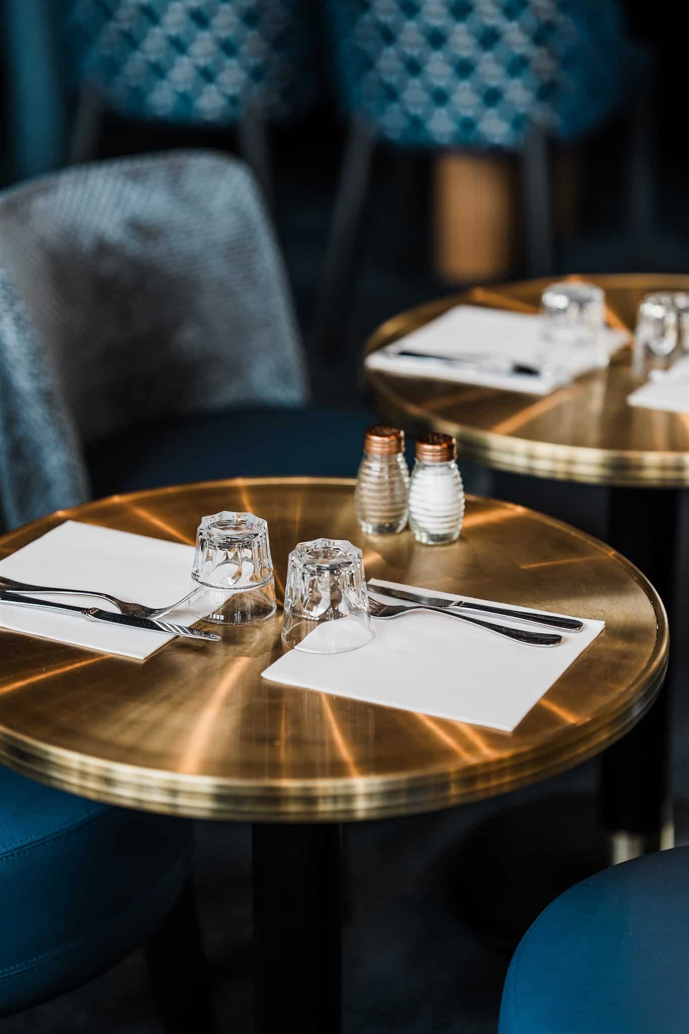 Icône de l’ère bistrot, le laiton se veut ici omniprésent.
